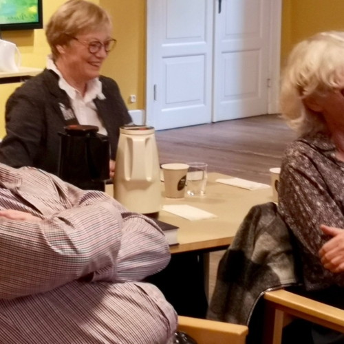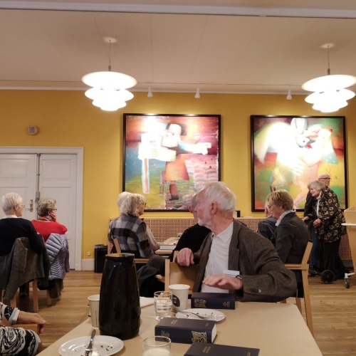 40 medlemmer besøgte Vartov beliggende et stenkast fra KBH Rådhus. Vi mødtes i gården ved siden af statuen af N.F.S. Grundtvig, som var præst ved den såkaldte “Kællinge Kirke” i Vartov. Vi hørte om bygningen Vartov og bænket i kirken også om Grundtvgs liv, kampe og bedrifter. Efterfølgende var der kaffe og kage i husets største konferencerum, hvor Rasmus Skov Borring tog over og førte os gennem højskolesangbogens oprindelse og udvikling frem til den nyeste udgave – den 15. Vi sang 9 fællesange.