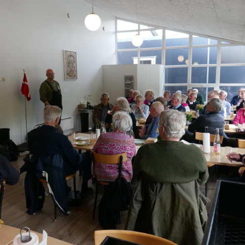 Vi blev budt velkommen af Kirsten og Jens Christian i kantinen, hvorefter vi fik serveret sandwich og æblemost af egen produktion. Herefter gav Jens Christian et spændende og holdningsstærkt foredrag om virksomheden og fødevareproduktionen.